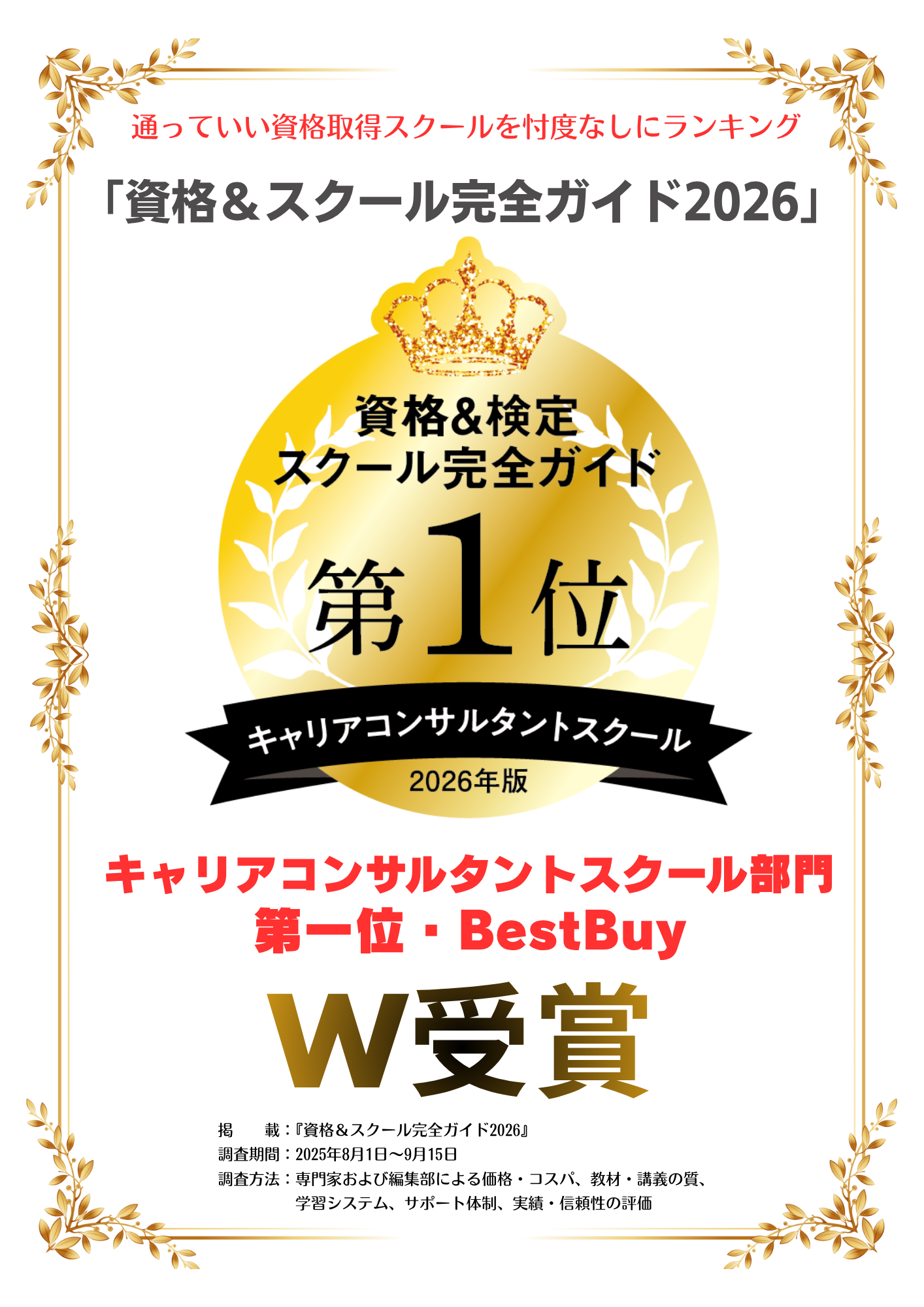【プレスリリース】『資格&スクール完全ガイド2026』にて キャリアコンサルタントスクール部門第1位・BestBuyのW受賞